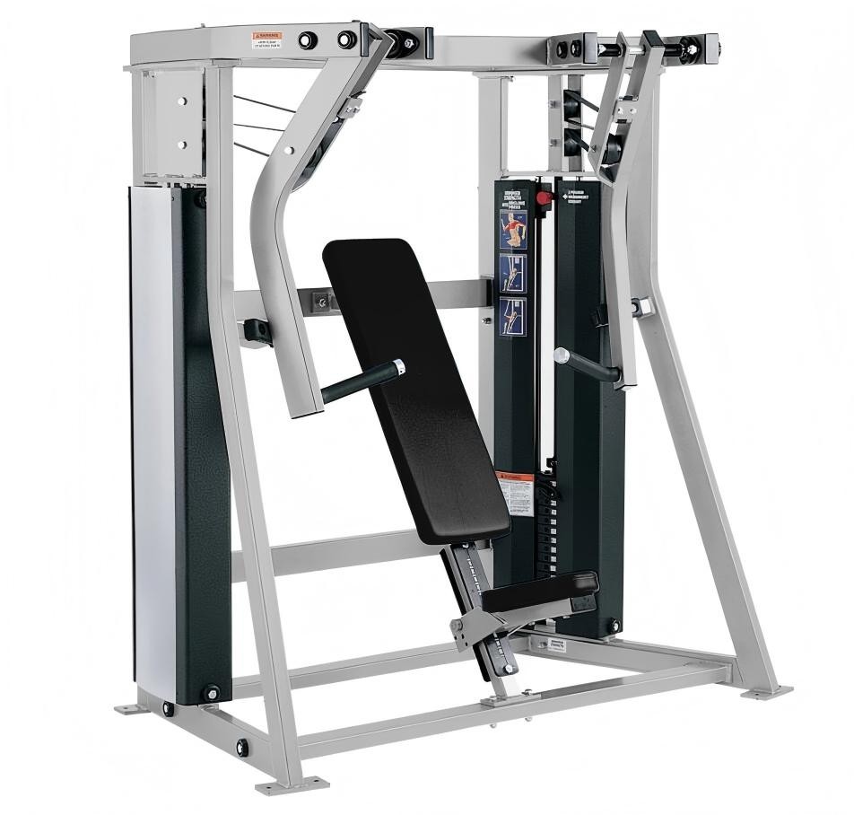 The MTS Iso-Lateral Decline Press features separate weight stacks that provide independent diverging and converging motions. The pressing angle provides optimal pectoral stimulation, and the seat back is angled for easy entry and exit. Size (L x W x H): 39\\\\\\\" x 64\\\\\\\" x 66\\\\\\\" (metric cm: 100 x 163 x 168)