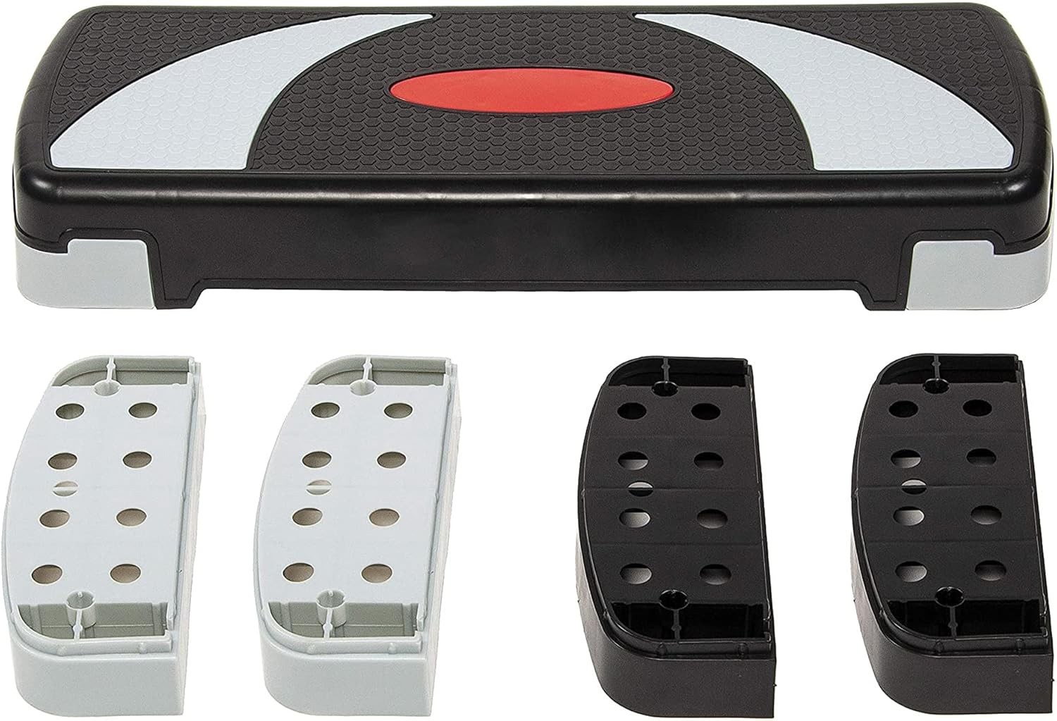 Adjustable Step Trainer: Includes raisers to customize platform height to 4, 6, or 8 inches; fitting for aerobics, cardio, strength training, and full-body workouts at home or in the gym