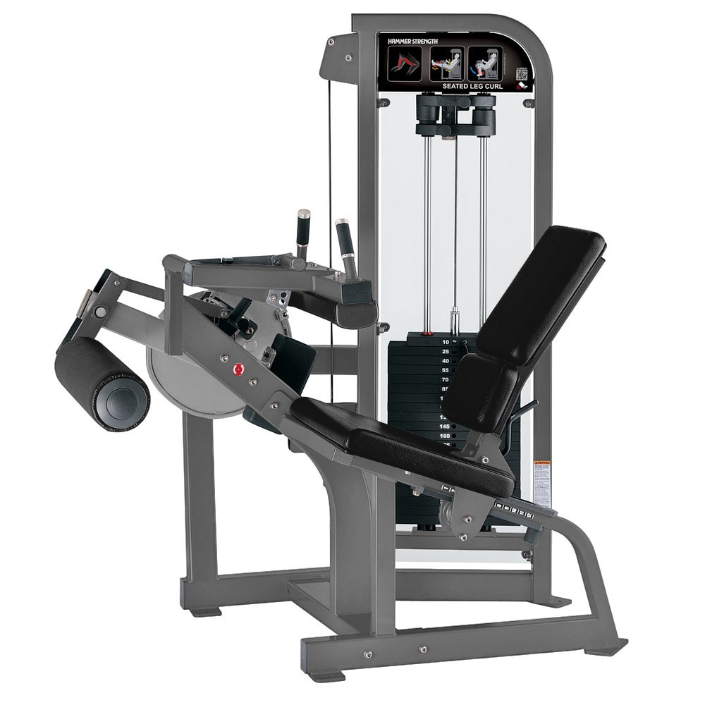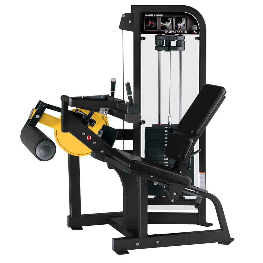 The Hammer Fitness Strength Select Seated Leg Curl is a fundamental part of the strength training progression. Adjustable back and thigh pads for better alignment and stabilisation, and adjustable start position provides five different starting points. The 22 pieces in the Hammer Gyms Strength Select line provide an inviting introduction to Hammer Gyms Strength equipment.